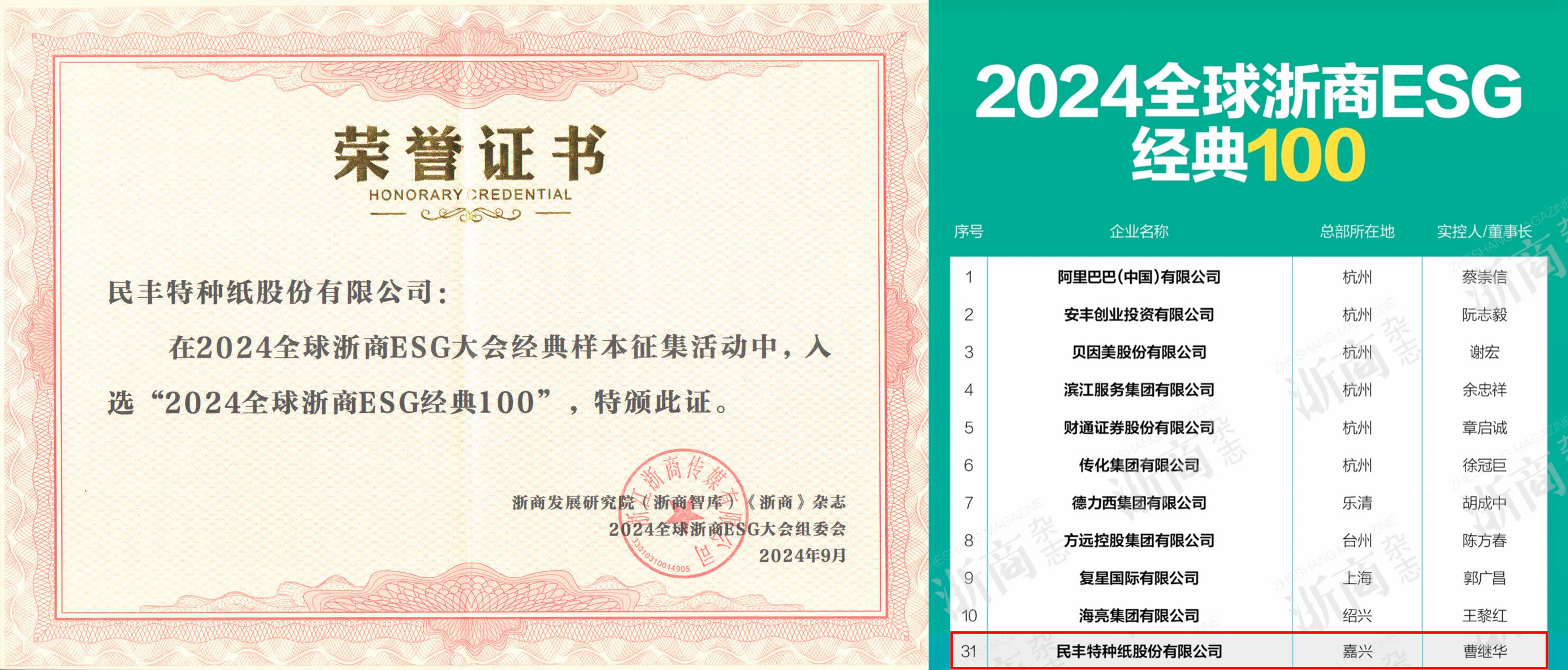 beat365荣耀登榜2024全球浙商ESG经典100